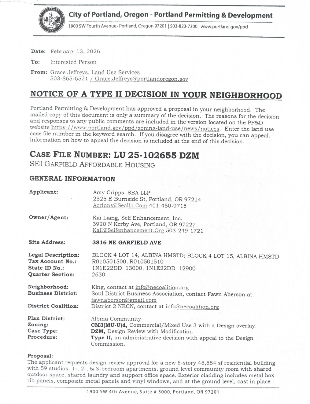 New Development: 3816 NE Garfield Ave: SEI Affordable Housing